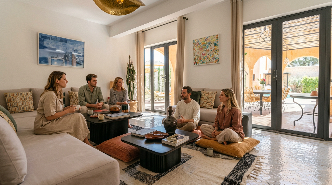 Our villa is nestled in the quiet hills near Essaouira. We chose this location specifically for its vastness and silence, providing the perfect "external container" for your nervous system to settle.